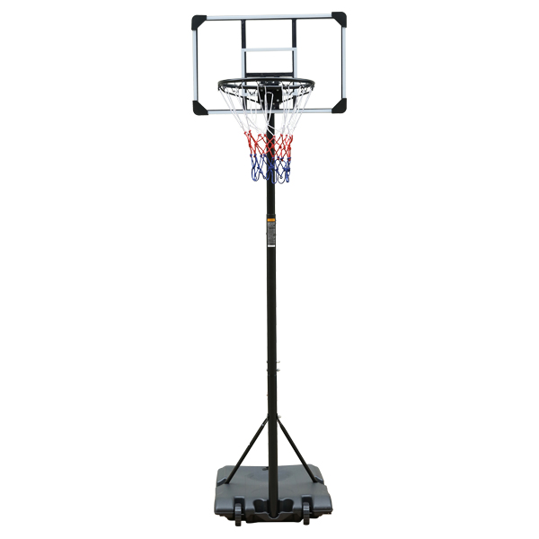 - Specitification:·Rim Inner Dia.:39cm·Backboard Size: 71 x 45cm·Base Size:74 x 55 x13cm·Steel Tube Dia.:45mm·Net material: weather resistance nylon·Adjustable Height: Min 1.79m, Max 2.13m·Material: Steeltube + PC backboard + PE base + Steel rim·Portable built-in wheels, can be easily moved o